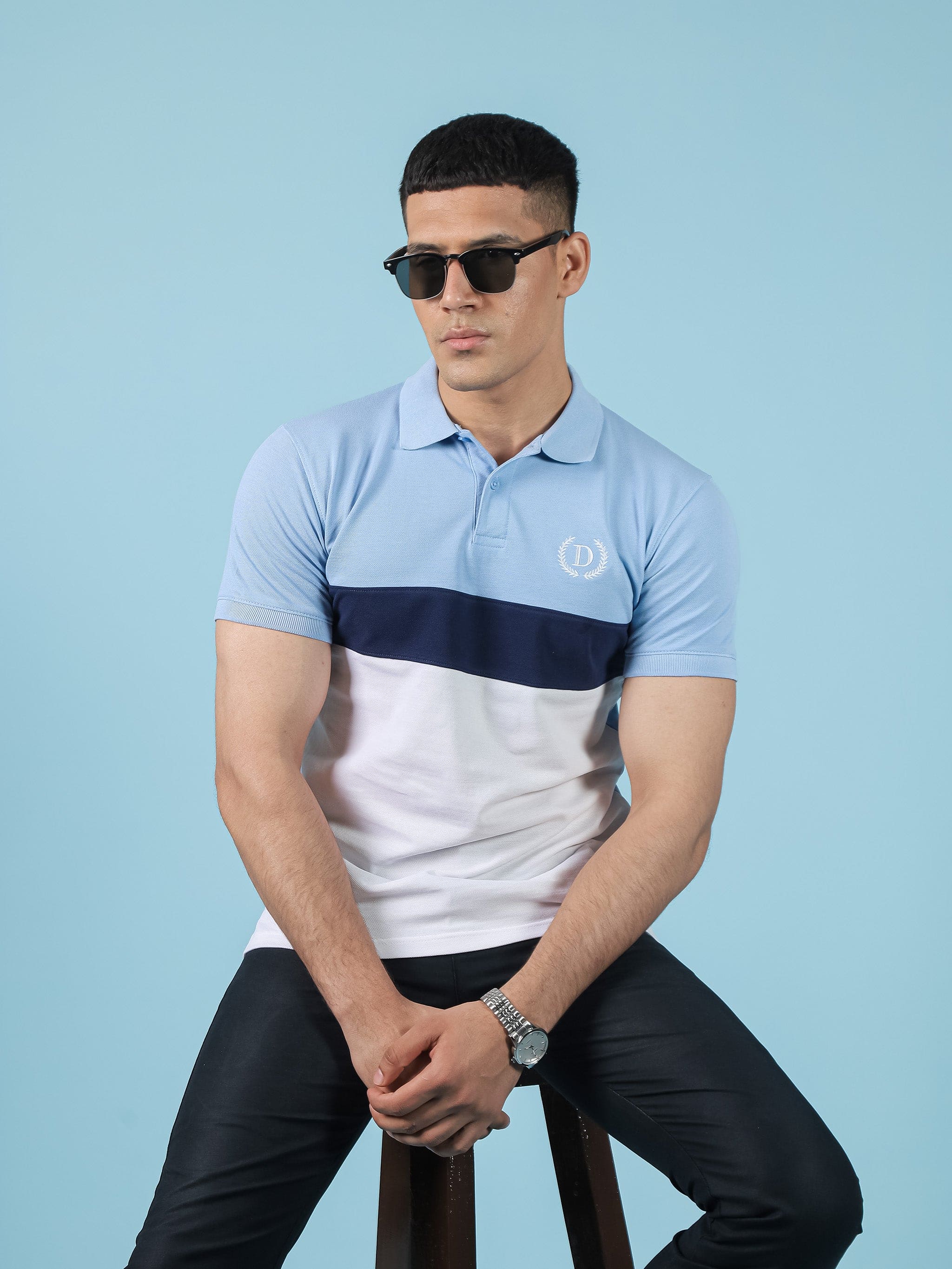 This Sky Blue Color Panel Polo is expertly crafted from cotton pique fabric and features a crisp white logo embroidery. The lightweight material offers breathable comfort, while the elegant color and logo add a touch of sophistication. Perfect for any occasion, this polo offers both style and quality.