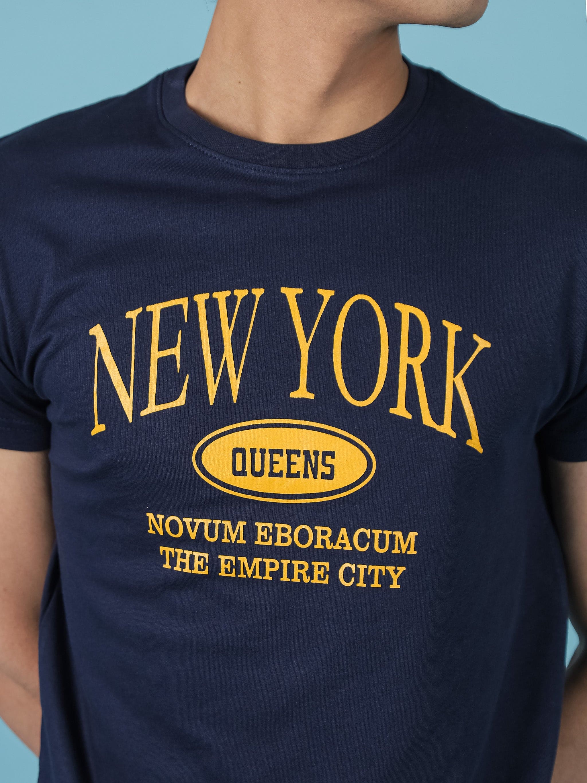 Introducing our Navy Graphic Tee, expertly crafted with soft cotton jersey and adorned with a striking gold screen print on the front. Experience the perfect combination of comfort and style with this must-have wardrobe essential.