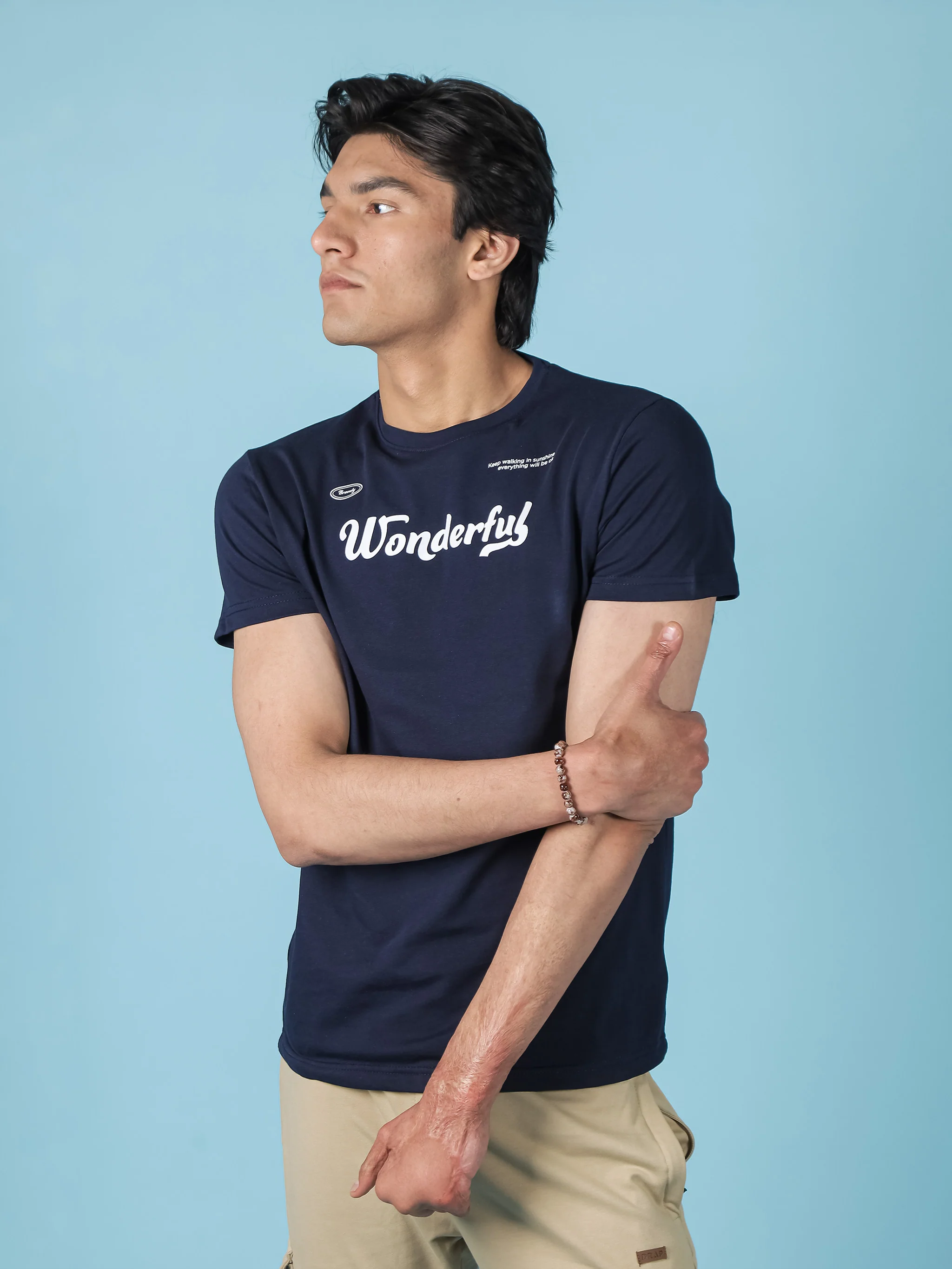 Introducing our Navy Graphic Tee, made from high-quality cotton fabric with a crisp white print on the front. This tee is both stylish and comfortable, making it the perfect addition to your wardrobe. Made for those who appreciate quality and timeless design.
